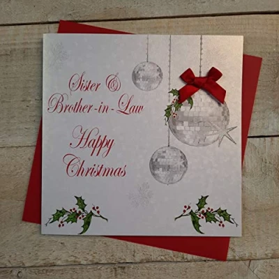 WHITE COTTON CARDS Sister & Brother in Law Happy Handmade Christmas Card (Baubles) Code x14 84