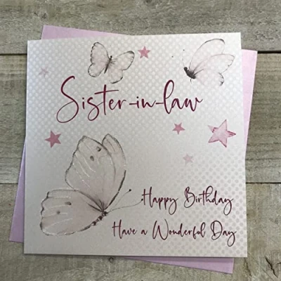 white cotton cards Sister in Law Happy Birthday Butterflies Handmade Card, wb123 NEW,16cm x 16cm