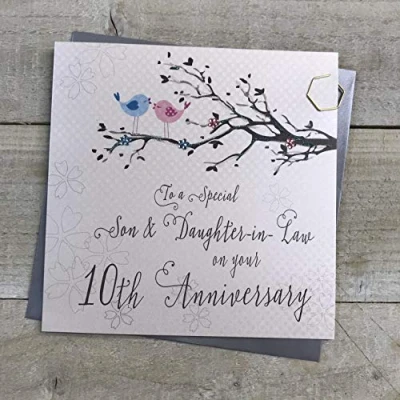 White Cotton Cards Son & Daughter in Law 10th Wedding Anniversary Card Tenth Tin Birds and Tree branch PD192 10, 16cm x