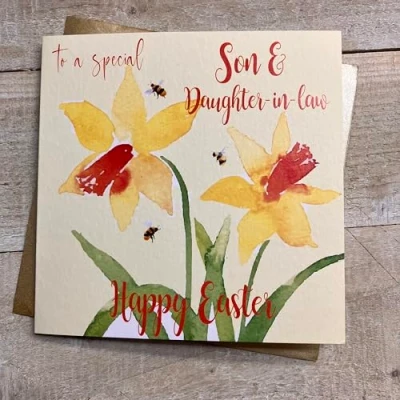 WHITE COTTON CARDS SON & DAUGHTER IN LAW DAFFODILLS EASTER CARD, HANDMADE (E25 8)