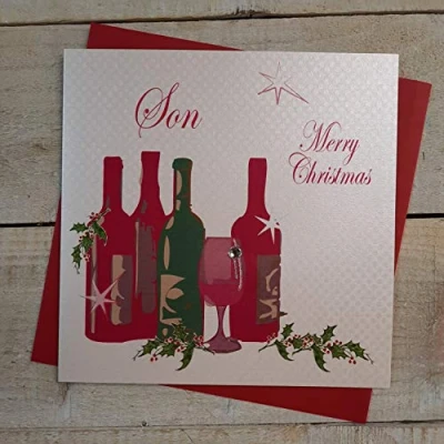 WHITE COTTON CARDS Son Merry Handmade Christmas Card (Wine) Code x14 76