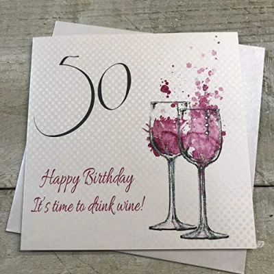 WHITE COTTON CARDS SPA50"50 Happy Birthday It's Time to Drink Wine!" Handmade 50th Card