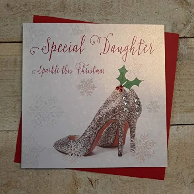 White Cotton Cards Special Daughter Sparkle This Christmas.Handmade Christmas Card (Shoes)