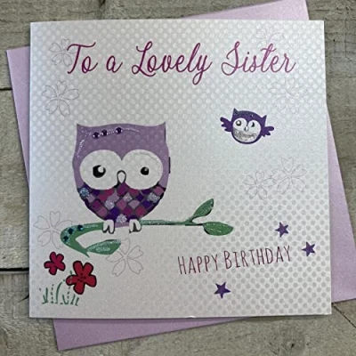 WHITE COTTON CARDS To A Lovely Sister Happy Handmade Birthday Card, WB258,16cm x 16 cm