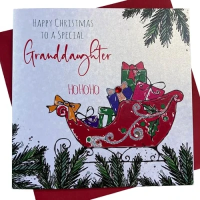 WHITE COTTON CARDS To A Special Granddaughter Ho Handmade Christmas Card (Santas Sleigh) Code fp26