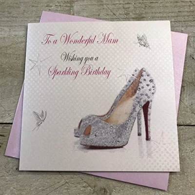 WHITE COTTON CARDS To A Wonderful Wishing You Sparkling, Handmade Birthday Card (Mam, Sparkly Shoes)