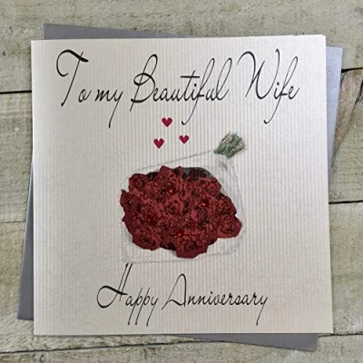 white cotton cards To My Beautiful Wife Happy Handmade Large Anniversary Card Roses, Red, XLWB47
