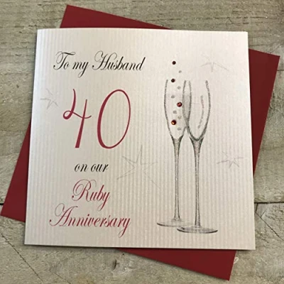 White Cotton Cards To My Husband On Our Ruby, Handmade 45th Anniversary Card (Champagne Flutes, Code P45H)