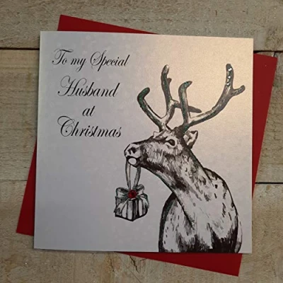 WHITE COTTON CARDS To My Special Husband, Handmade Christmas Card (Stag, Code EX700)