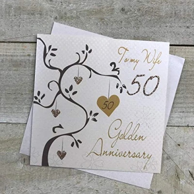 White Cotton Cards To My Wife Goldon, Handmade 50th Anniversary Card (Golden Tree)
