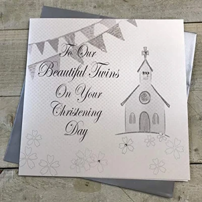 WHITE COTTON CARDS To Our Beautiful Twins Day, Handmade Christening Card, Code XPD57 TW, Silver Church