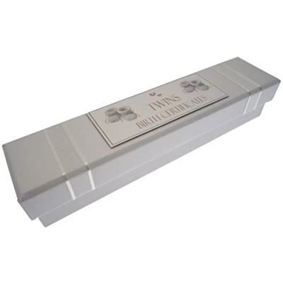 Beautiful handmade Twins Birth Certificate Silver Booties Certificate Holder Stunning presentation holder finished with organza ribbon Measures 5x22.5x4.5cm Hand finished with gorgeous diamantes and sparkling glitter The perfect gift for your special occasion
