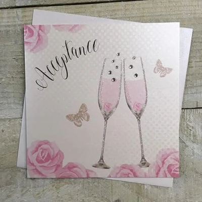 WHITE COTTON CARDS WEDDING ACCEPTANCE CARD, FLUTES DESIGN, HAND FINISHED (SS42 AC)