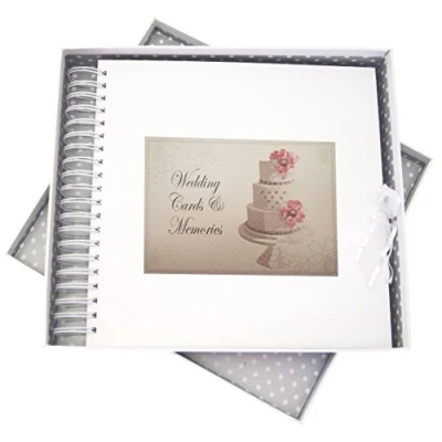 Beautiful handmade Wedding Day Vintage Cake card & memory book Spiral bound allowing the book to expand and be filled with cards and other special memories Includes approximately 40 blank pages and presented in a white gift box with a lid Hand finished with gorgeous diamantes and sparkling glitter The perfect gift for your special occasion