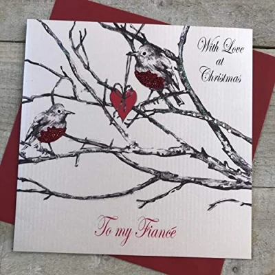 WHITE COTTON CARDS With Love Fiance, Handmade Christmas Card (Robin)