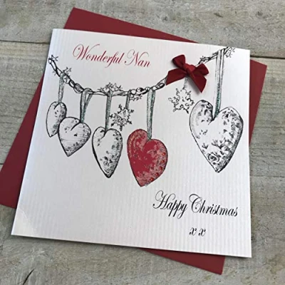 WHITE COTTON CARDS Wonderful Nan Happy, Handmade Christmas Card (Heart Garland, Code EX653)