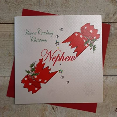 White cotton cards X142 Have a Cracking Christmas Nephew Handmade Card with Cracker Design,