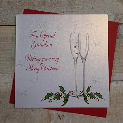 White cotton cards X74 Special Grandson Handmade Christmas Card,