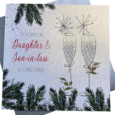 White cotton cards XC5 To a Special Daughter and Son In Law At Christmas Handmade Large Card,