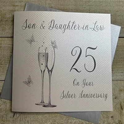 white cotton cards XLBD19 25SD Large"Son & Daughter in Law 25 On Your Silver Anniversary" Handmade Card,22cm x 22cm