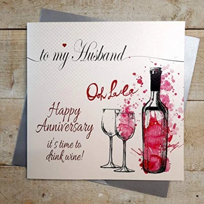 white cotton cards XLL239 Large"to My Husband Happy Anniversary Time to Drink Wine" Handmade Card