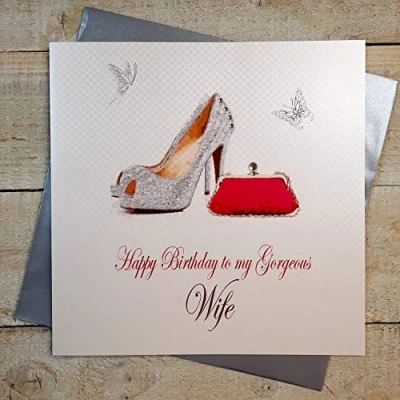 white cotton cards XPD37 W Large "Happy Birthday to My Gorgeous Wife" Handmade Card