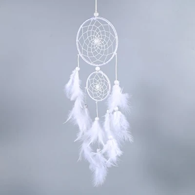 Mainly adopt high quality feather materials, white color, delicate and dreamlike. Handmade artware, Indian style, very attractive. Decorated with feather and beads, retain sweet dream and blessing. Wall hanging Decoration for home, wall, study room, window, car etc. It is a wonderful decoration for your house, also a nice gift for your friends.