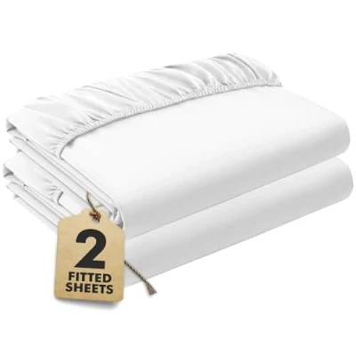 White Fitted Sheet King Beds (150x200 cm, Deep 35 cm) Pack of 2 Soft Microfibre Elasticated Cover Breathable, Durable & Easy Care Bottom
