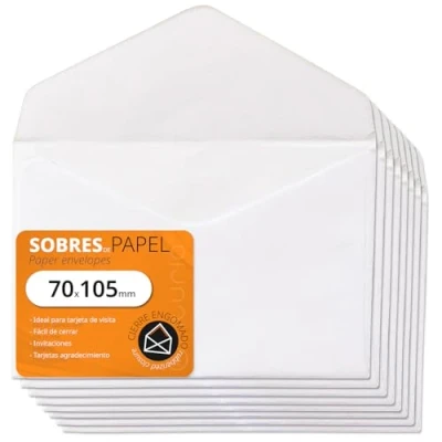 MINI WHITE ENVELOPES: The white business card size letter envelopes (70 x 105 mm) are ideal for personalized business cards, small gift envelopes for communion details for guests or gift bags on special occasions. VARIETY OF USES: You can use these paper envelopes for gift card, gift envelopes, communion money envelopes, or even as a letter envelope for wedding money, adding a sophisticated touch to any celebration. ADHESIVE CLOSURE: These envelopes with adhesive closure ensure a secure and easy closure. Perfect as wedding invitation envelopes, wedding greeting cards, or wedding cards, they ensure a flawless presentation for any occasion. COMPACT AND PRACTICAL SIZE: The business card envelopes are designed to be handy and easy to carry, keeping your cards always presentable and accessible. GUARANTEED PROTECTION These paper envelopes ensure your business cards and wedding invitations remain in perfect condition, avoiding bending or damage during transportation or storage.