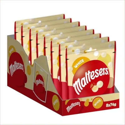 White Maltesers, Chocolate & Honeycomb, Treats, 8x74g Pouch