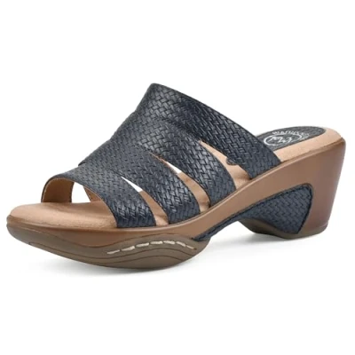 WHITE MOUNTAIN Shoes Valora Women's Clog Sandal, Navy/Woven, 7 UK