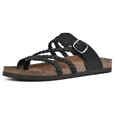 WHITE MOUNTAIN Women's Hayleigh Flat Sandal, Black/Nubuck, 7 UK