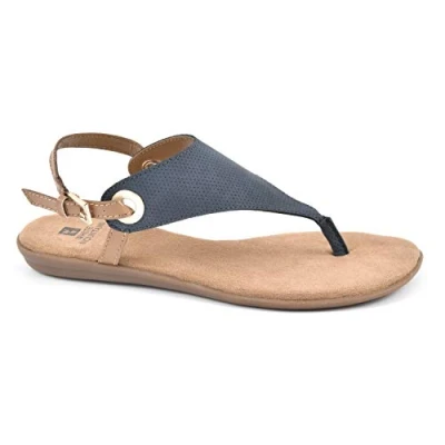 Cushioned insole Adjustable back strap 1" flat heel Thong sandal Soft suedette lining