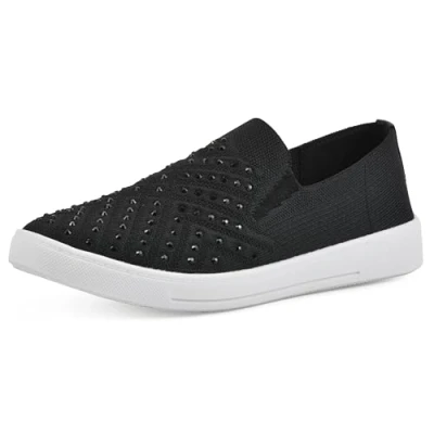 Cushioned insole Knit woven upper Lightweight and breathable Rhinestone embellishments