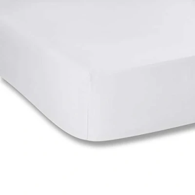 White Plain Dyed Cotton Percale 200TC Fitted Sheet 120 x 200 cm