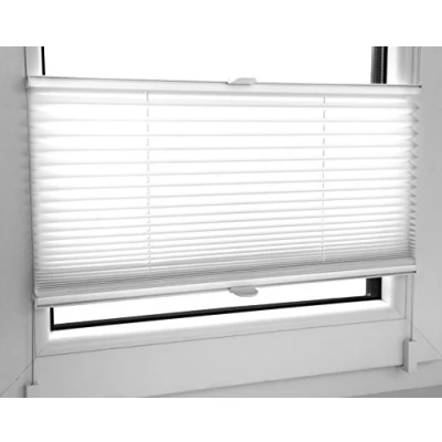 Size Width: 100cm Length/Drop: 200cm. Shorter drops of 100 and 150cm are available in our Amazon Store Colour : White /// Material: 100% pre-folded opaque polyester fabric. Grey, Black, Sand and Dark Purple colours are available in our Amazon Store The pleated blind, also known as a plisse blind, is a smart design that is both attractive and functional. The blind has two aluminium rails between which the pleated fabric is stretched. The blind can be moved from both the top and bottom of the window, allowing you to control the shade provided. The blind comes as standard with two types of fittings. You will only need to use one of these. If your windows open inwards you can use the clip fittings - no drilling will be required, see video below: https://player.vimeo.com/video/161911144 for installing using screws please see this link: https://player.vimeo.com/video/161906123