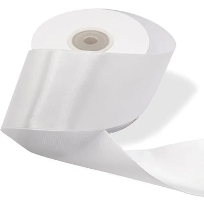 White Ribbon 50mm Satin Spool Large 25m Thickness 5cm for Gift Idea Wedding Christening Christmas New Year Party Favour Roll