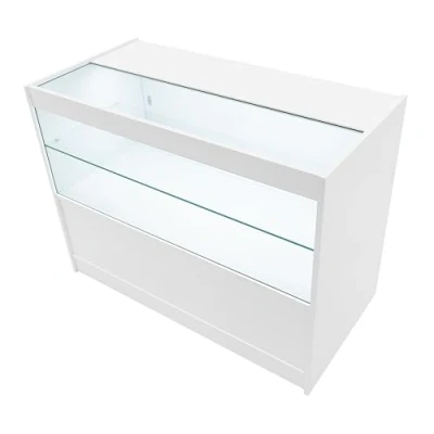 ManoManoGeneral description Designed to bring a sleek, modern edge to any retail environment, the C1200 LED shop counter in white offers both style and practicality. Ideal for settings such as clothing boutiques and jewellery shops, this elegant display counter is crafted to catch the eye while providing secure and efficient product presentation. Constructed from high-quality MDF with a durable melamine finish and toughened glass panels, the C1200 counter is built for lasting performance in busy commercial settings. The bright white LED lighting adds a crisp, professional glow to your display items, ensuring that products are showcased to their best advantage even in lower-light conditions. The counter’s clean white exterior enhances its premium look, making it a refined addition to both contemporary and classic store layouts. Storage and display needs are thoughtfully balanced in this design, featuring three shelves: two display shelves for highlighting feature items and one enclosed shelf