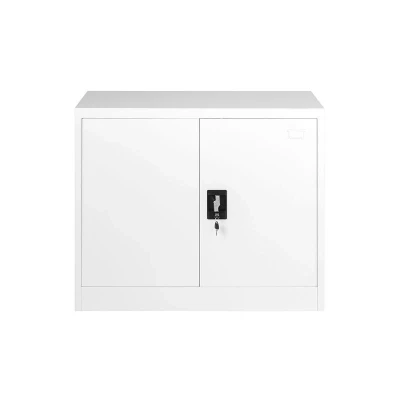 White Steel 2 Door Vertical Filing Storage Cabinet 90cm Tall Excellent sturdy professional filing cabinet, lockable, one lock to secure both doors Easy to assemble, flat pack assembly construction, with easy to follow instructions.