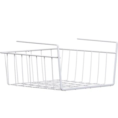 JoybuyThis white metal under-shelf basket provides extra storage space in kitchens, bathrooms, or living rooms. Durable, easy to install, and ideal for organizing everyday essentials, it’s a practical and stylish storage solution.