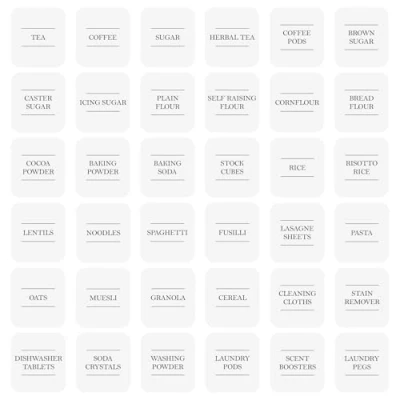 This set of Storage Jar Labels from Argon Tableware serves as your fuss-free shortcut to complete kitchen cupboard coordination! With a whopping 36 stickers on offer, these pre-printed labels will let you easily identify an almost endless variety of pantry and utility essentials; everything from spaghetti to scent boosters, cocoa powder to cleaning cloths, laundry pegs to lentils. Simply peel and stick to your glass jar or storage container of choice, fill with the corresponding contents in question and away you go! Available in White and Black. Dimensions: Width: 29.5cm Depth: 21cm Height: 0.2cm