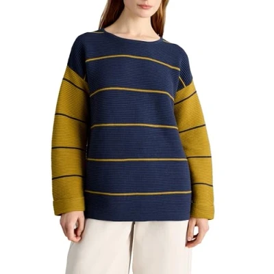 White Stuff Jana Striped Jumper Long Sleeve, Crew Neck, Regular Fit Made of Cotton Knit Navy Blue Multi Size 16