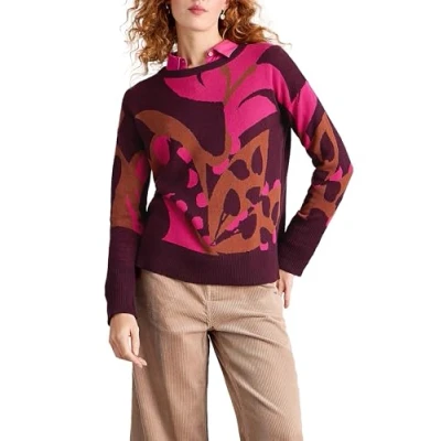 White Stuff Olive Pullover Long Sleeve, Crew Neck, Regular Fit, Made of Cotton Knit Plum Multi Size 8
