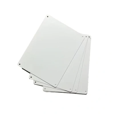 8" x 6 " White Sublimation Blanks. Approx. A5 Size White side is printable using sublimation method Remove clear film. Press at 185 degrees for 60 seconds 0.55mm Aluminium. Blanks. Round Corners. 4 Pre Drilled Holes, Manufacturer: Shawprint Limited