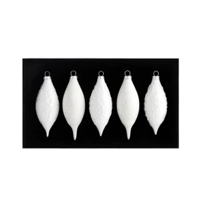 White baubles to make your tree stand out this year 5 pack of teardrop baubles in matt and shiny finishes Different designs with glitter and mottled effects Height: 15 cm Diameter: 5 cm