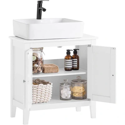 General description Brand New White Under Sink Bathroom Storage Cabinet will blend perfectly with your modern or traditional decor. It features double doors with an internal adjustable shelf, ensuring ample storage for all your bathroom essentials. This space-saving storage solution helps keep your bathroom tidy and organized. Technical specifications Material/Finish: MDF/White Dimensions: W60 x D30 x H62 cm Weight: 12 kg Load capacity: Top: 20 kg, middle shelf: 15 kg, bottom shelf: 20 kg Installation The item comes in a flat pack and requires self-assembly. Detailed instructions are supplied.