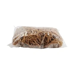 Rubber bands for fastening. Designed to be used over and over. Supplied in clear packaging. Contains Latex. Pack contains 454g of rubber bands. Size 33 (87mmx2mm). Colour: Natural.