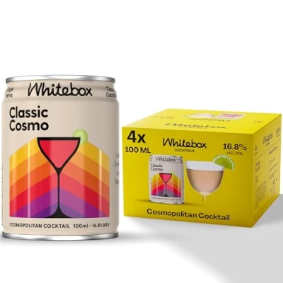 𝗖𝗟𝗔𝗦𝗦𝗜𝗖 𝗖𝗢𝗦𝗠𝗢: Our cosmopolitan canned cocktail takes the time and guesswork out of creating the perfect pour. Vodka, Triple Sec, Cranberry, Lime. 16.8% ABV, 100ml. 𝗛𝗢𝗪 𝗜𝗧 𝗧𝗔𝗦𝗧𝗘𝗦: Dry - Zesty - Sophisticated. Serve ice cold into a cocktail glass and garnish with orange peel. 𝗣𝗥𝗢𝗙𝗘𝗦𝗦𝗜𝗢𝗡𝗔𝗟𝗟𝗬 𝗠𝗔𝗗𝗘: Expertly pre-mixed cocktail cans by a team of world-class bartenders. No need for ingredients, a bartender, and no mess to clean up. 𝗦𝗜𝗡𝗚𝗟𝗘 𝗦𝗘𝗥𝗩𝗘: Each cocktail can is portioned to match a classic recipe, meaning you can pour a perfect serve every time, within a matter of seconds, and enjoy ready-to-drink cocktails. 𝗖𝗟𝗔𝗦𝗦𝗜𝗖 𝗖𝗢𝗖𝗞𝗧𝗔𝗜𝗟𝗦: Our dedication to perfecting the classic cocktails in a pre-mixed & ready-to-drink format makes Whitebox the ultimate cocktail treat.