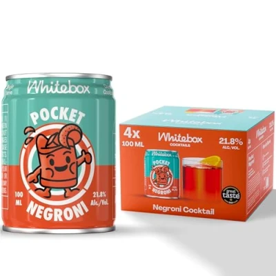 𝗣𝗢𝗖𝗞𝗘𝗧 𝗡𝗘𝗚𝗥𝗢𝗡𝗜: This bittersweet Italian classic is made with Porter's Gin, Italian bitter aperitif and sweet vermouth. 21.8% ABV, 100ml. 𝗛𝗢𝗪 𝗜𝗧 𝗧𝗔𝗦𝗧𝗘𝗦: Bitter, sweet, punchy. Serve in a rocks glass with a large ice block and garnish with an orange peel. 𝗣𝗥𝗢𝗙𝗘𝗦𝗦𝗜𝗢𝗡𝗔𝗟𝗟𝗬 𝗠𝗔𝗗𝗘: Expertly pre-mixed cocktail cans by a team of world-class bartenders. No need for ingredients, a bartender, and no mess to clean up. 𝗦𝗜𝗡𝗚𝗟𝗘 𝗦𝗘𝗥𝗩𝗘: Each cocktail can is portioned to match a classic recipe, meaning you can pour a perfect serve every time, within a matter of seconds, and enjoy ready-to-drink cocktails. 𝗖𝗟𝗔𝗦𝗦𝗜𝗖 𝗖𝗢𝗖𝗞𝗧𝗔𝗜𝗟𝗦: Our dedication to perfecting the classic cocktails in a pre-mixed & ready-to-drink format makes Whitebox the ultimate cocktail treat.