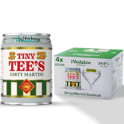 WHITEBOX Cocktails Single Serve Classic Tiny Tee's Dirty Martini — Case Of 4 Cocktail Cans Full Strength Old Fashioned Pre mixed Ready To Drink 4x100ml